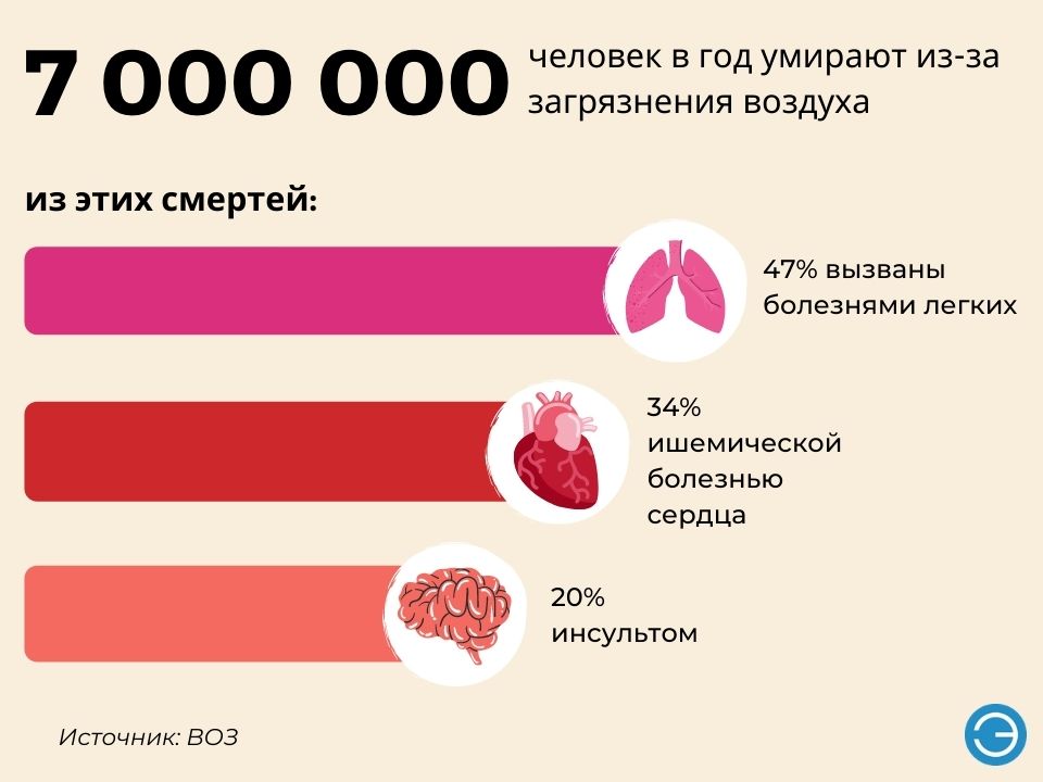 - Обострение хронических болезней — такие как астма, бронхит, сердечно-сосудистые патологии.