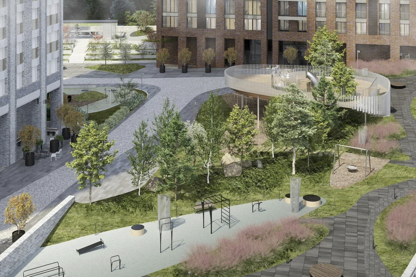 - Наличие зеленых насаждений и архитектурных элементов