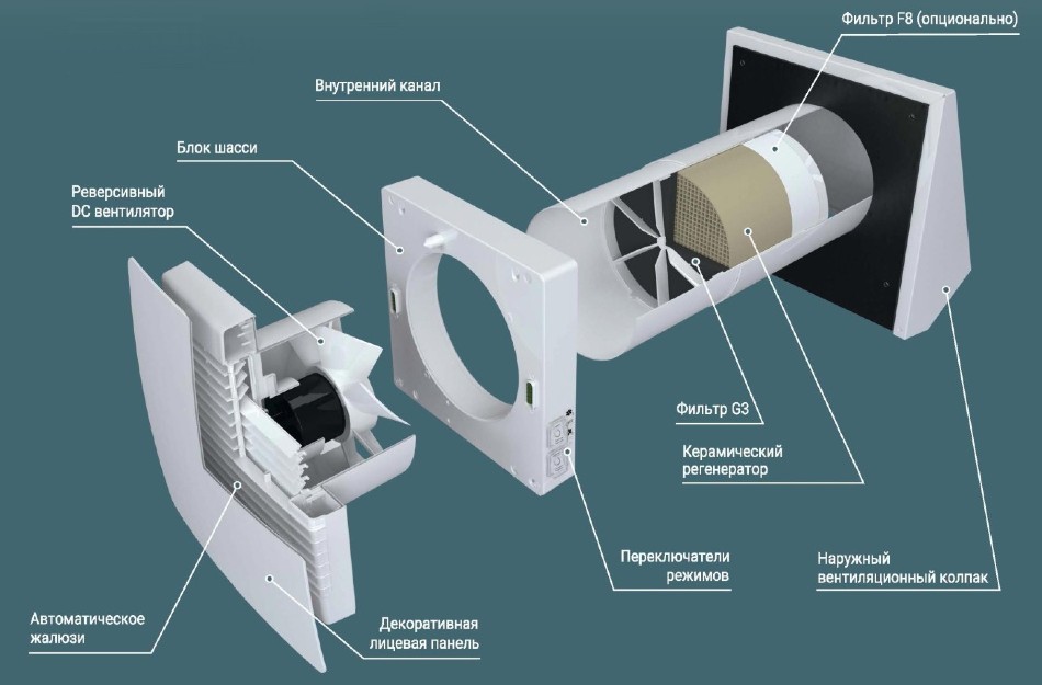 Активные системы включают в себя вентиляторы, теплообменники, системы фильтрации и автоматику управления. Они обеспечивают более высокий КПД и возможность регулировки уровня рекуперации.